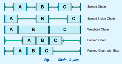 속성은 아래와 같이 2가지가 있으며, 나머지 속성들과 조합하면 밑에 그림과 같이 여러가지 체인 스타일이 나올 수 있다.