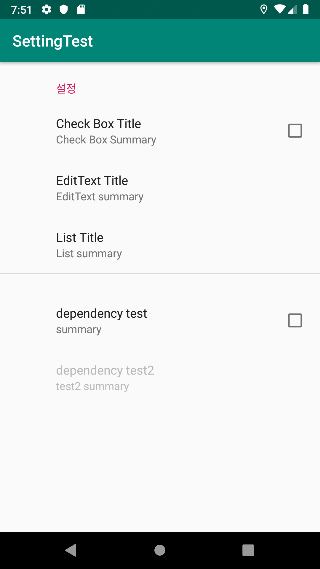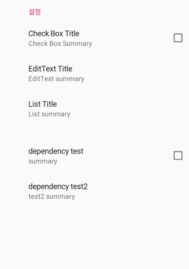 여기서는 CheckBox, EditText, List, 의존성 기능을 넣었다. (파일 이름은 달라도 상관 없어요)